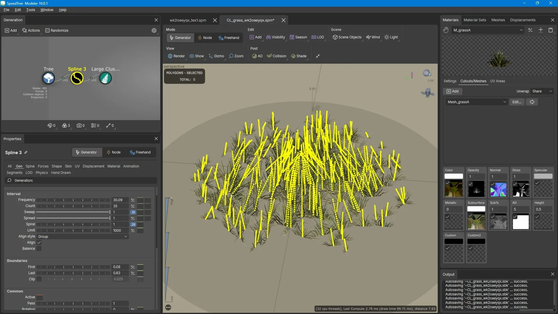 Section titled “Create the Final Asset in SpeedTree”Create nodes in SpeedTree and import the cluster texture you created earlier. This will become the final asset you export to Unreal Engine.
