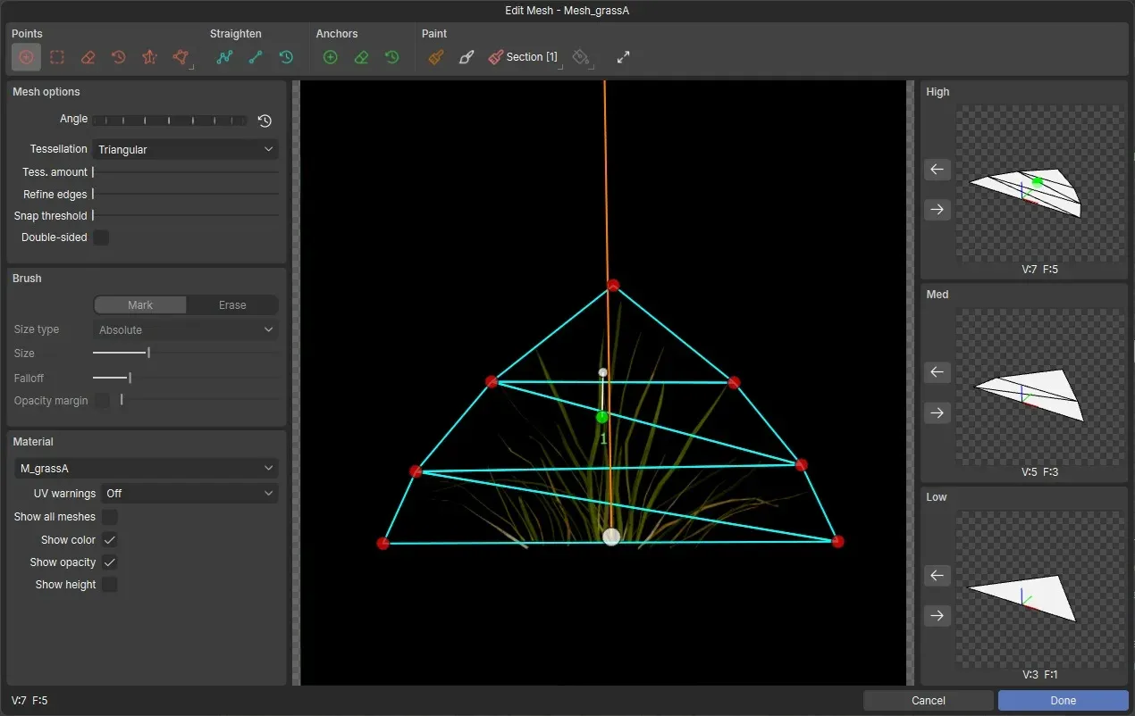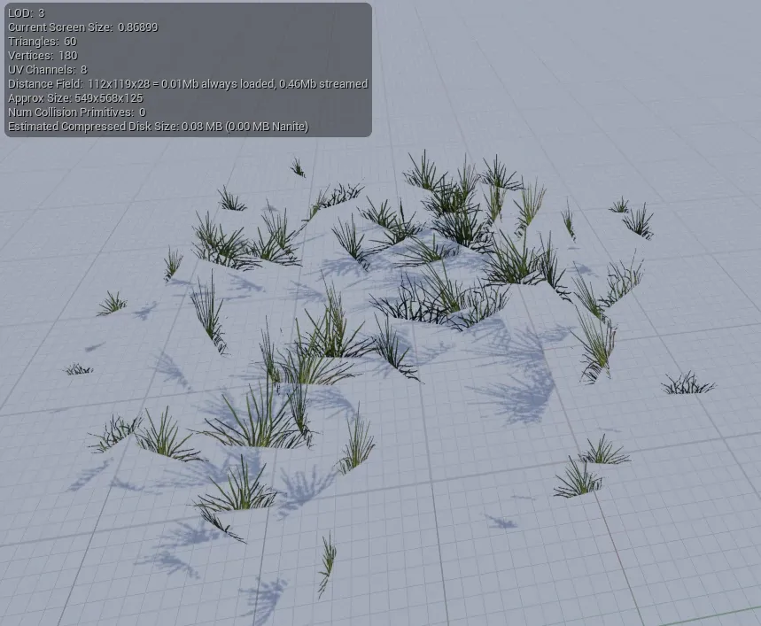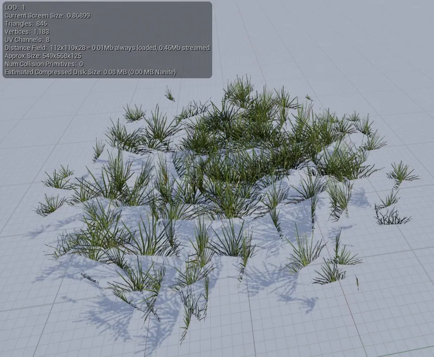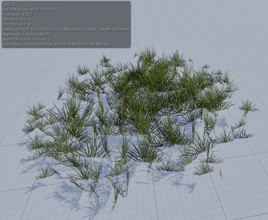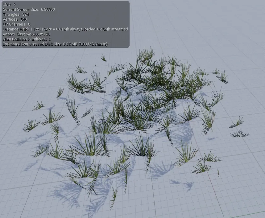 Since we will place large quantities of grass in an open-world environment, the assets must be as light as possible.