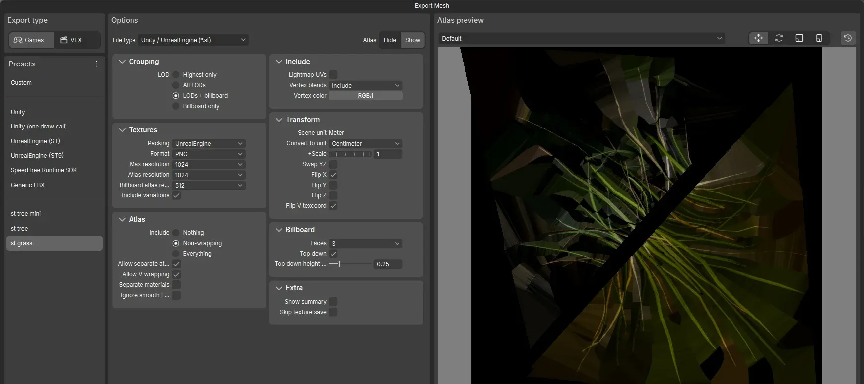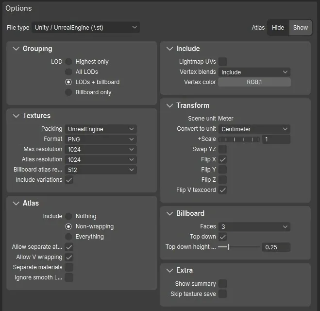 Section titled “Introduction”This explains an asset-creation workflow using SpeedTree.