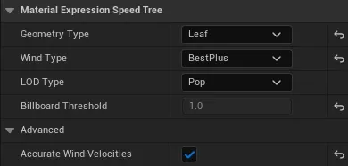 Enable Accurate Wind Velocities in the SpeedTree asset settings to reduce noise caused by wind movement.