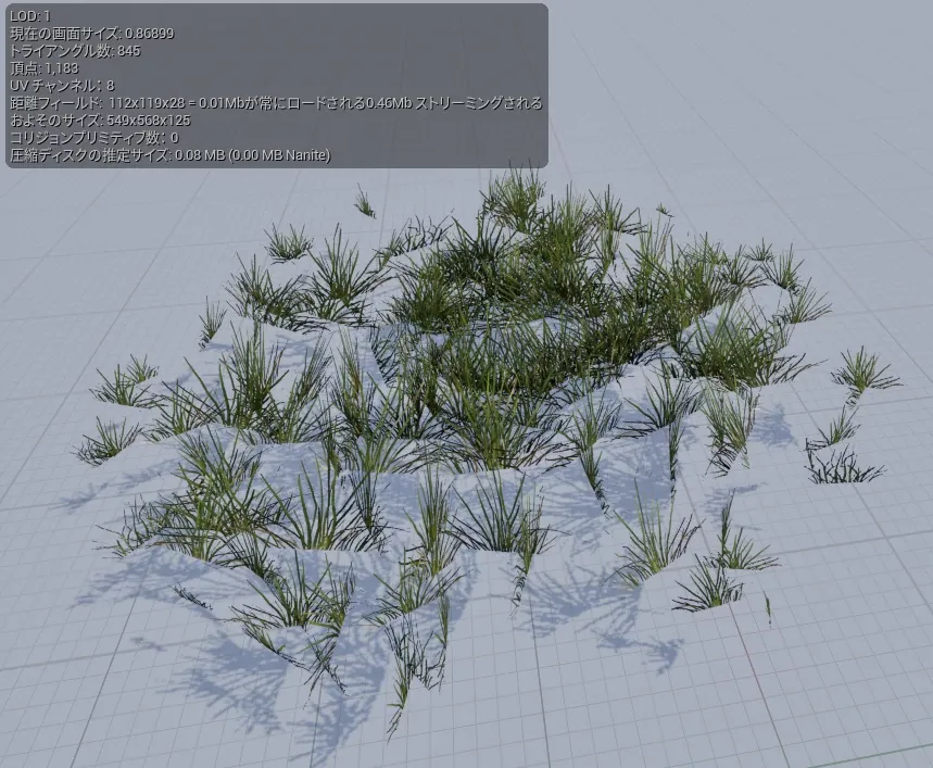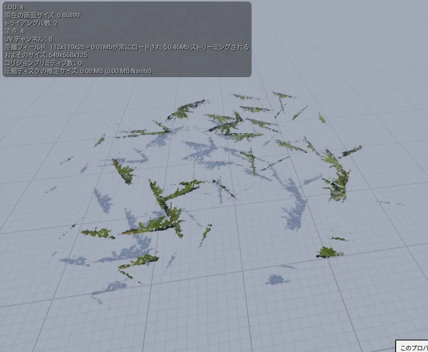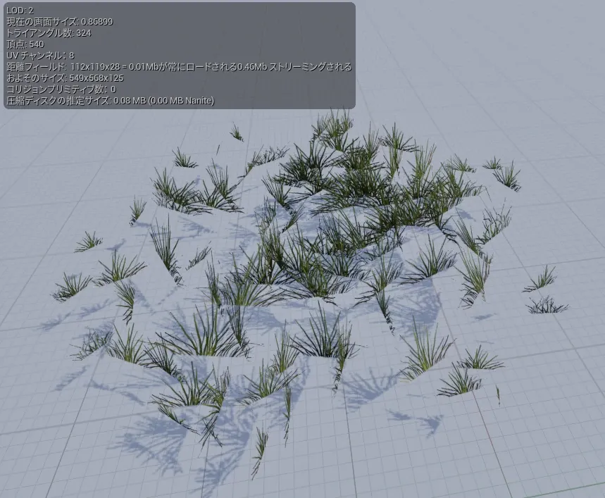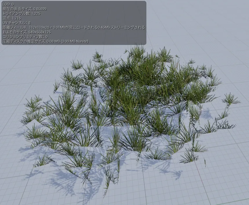 広域に大量配置するClutterとして利用します。 配置数を少なくするため5.5メートルの大きなサイズにします。 HeightMapを使い地面にフィットさせます。