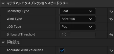 SpeedTreeノード内にあるAccurate Wind Velocitiesをチェック